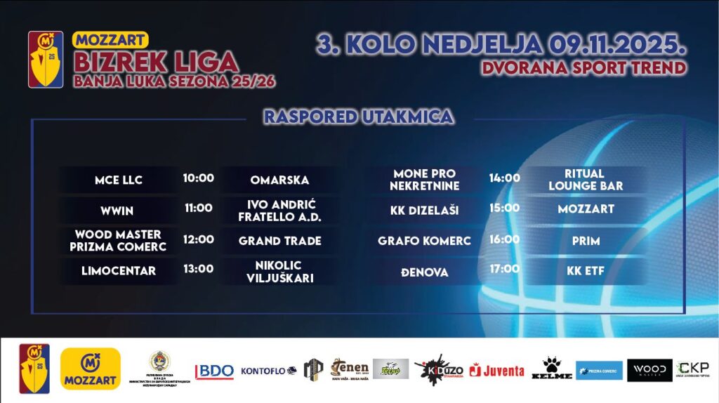 📅 Raspored 3. kola – Nedjelja, 09.11.2025.
